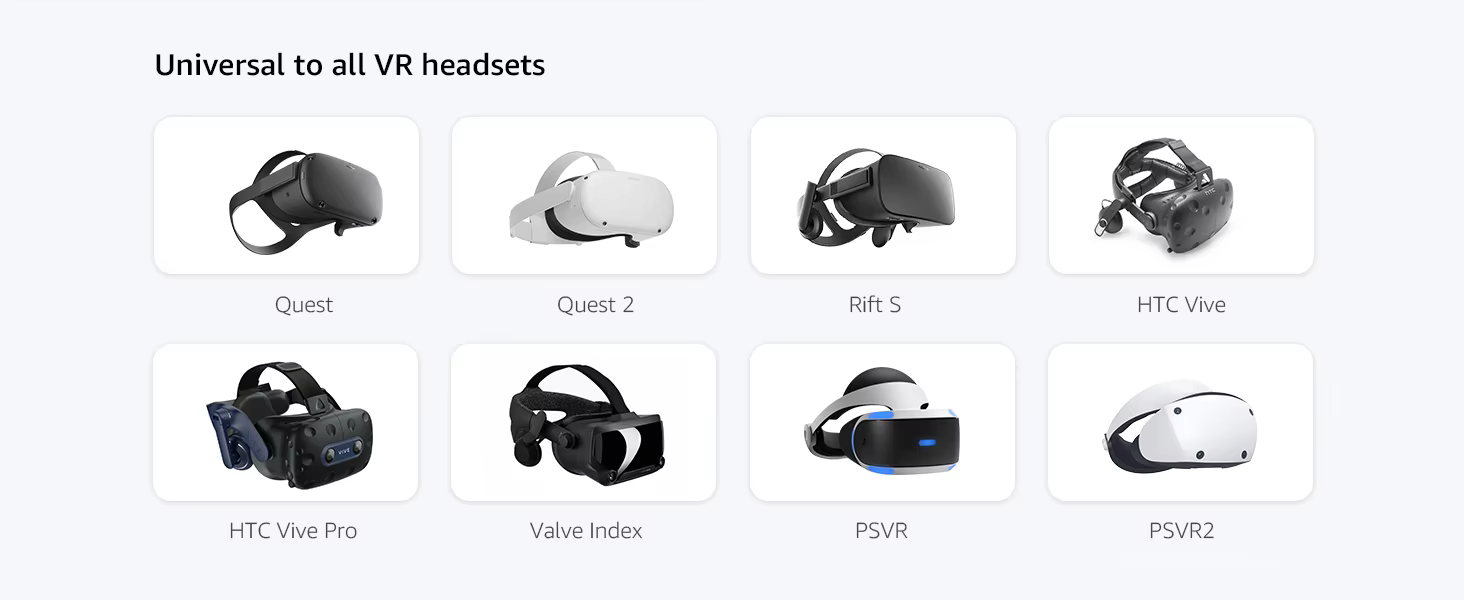 | سازگار با هدستها | Meta Quest 3 / 2 / 1، Oculus Rift / Rift S، HTC Vive / Vive Pro، PSVR |